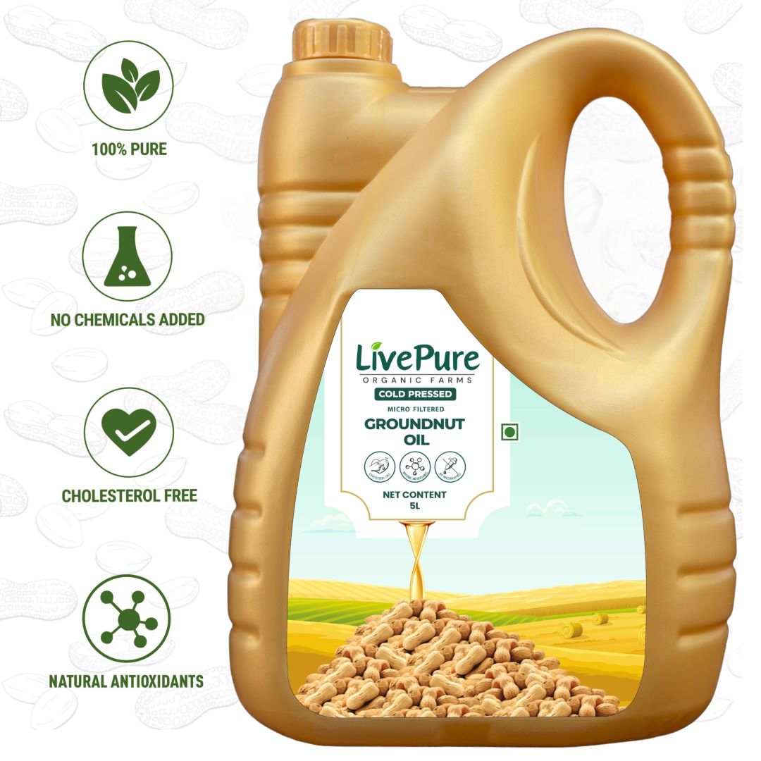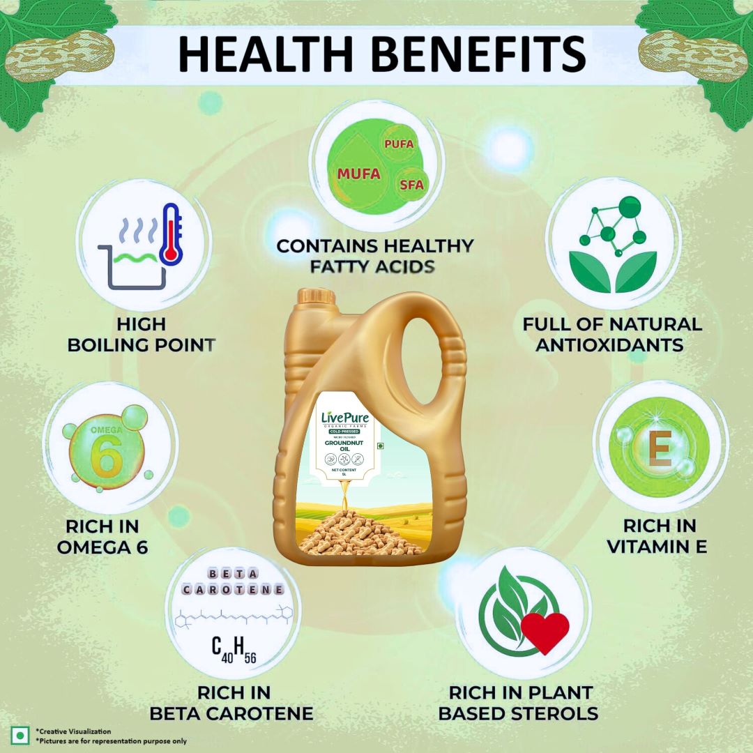 - CONTAINS NATURAL ANTIOXIDANTS : LivePure cold press oil offers more than just an adaptable cooking option. Rich in naturally occurring Vitamin E, this oil groundnut can be a part of your daily routine, supporting overall skin care. Enjoy the nourishment it provides with every meal, adding a touch of healthy living to your lifestyle.